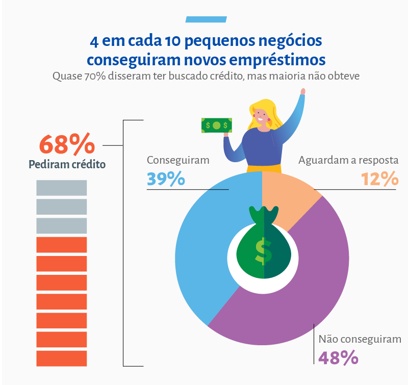 Um terço dos pequenos negócios do país procuraram por empréstimos em instituições financeiras nos três meses anteriores à pesquisa. No entanto, apenas quatro entre 10 deles conseguiram o crédito.