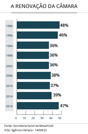 Em entrevista ao programa Painel Eletrônico, da Rádio Câmara, o consultor político Antônio Augusto de Queiroz afirmou que a reeleição será alta porque 88% dos 513 deputados atuais, ou 446 parlamentares, são candidatos: