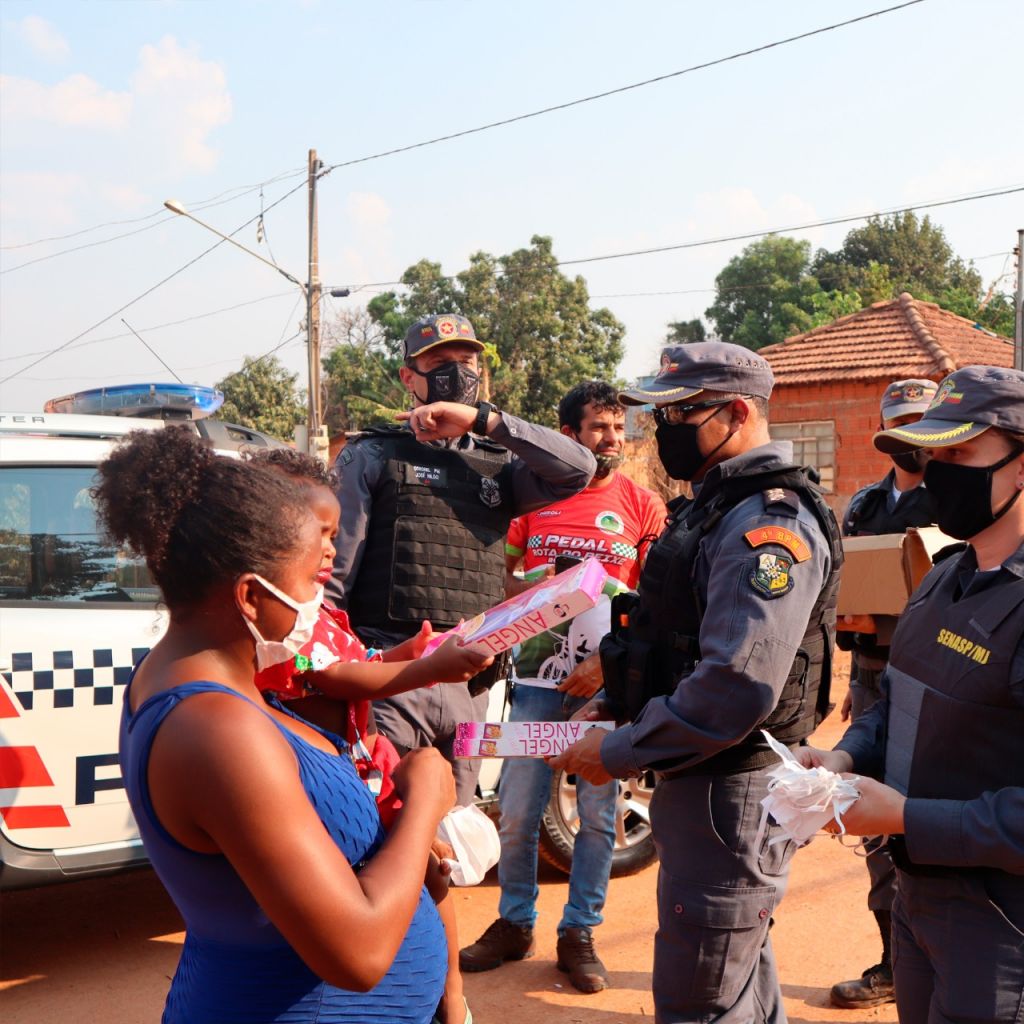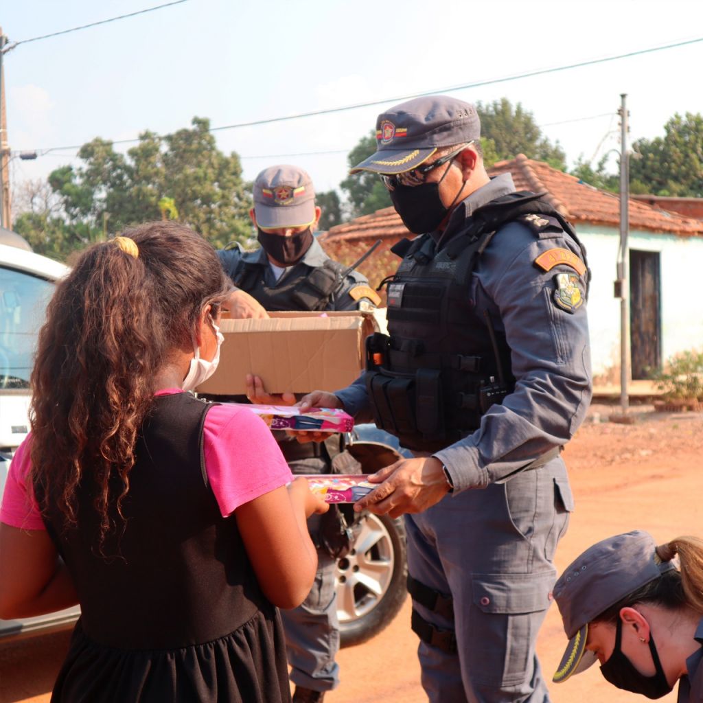 Policiais militares de Várzea Grande fizeram parte de uma nobre ação nessa segunda-feira (17). Eles entregaram presentes a cerca de 100 crianças carentes do Bairro Serra Dourada, em Várzea Grande (região metropolitana de Cuiabá).