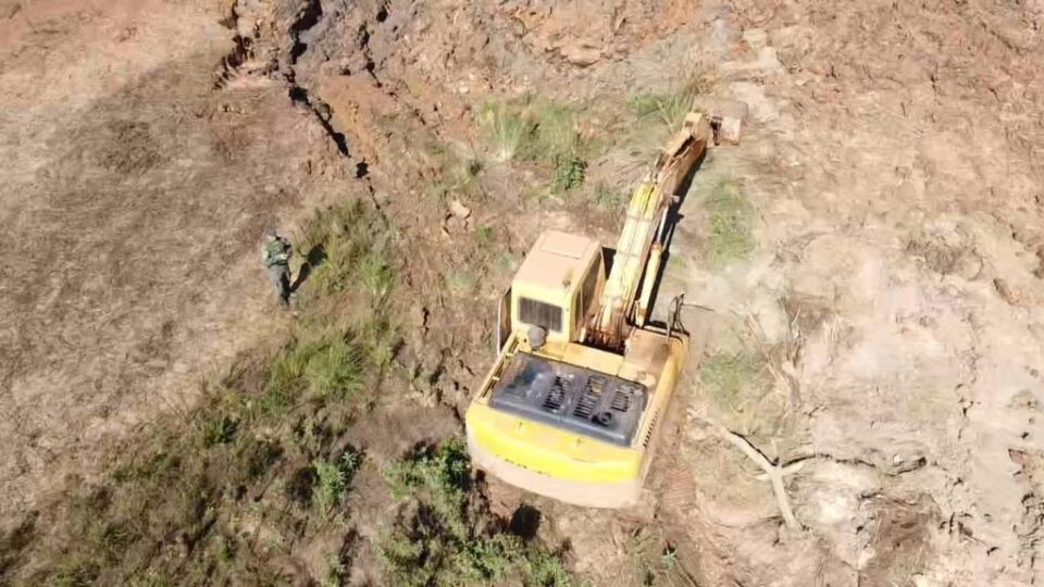 Na região informada, os militares se depararam com uma área típica de funcionamento de garimpos ilegais e flagraram três homens realizando a extração de minérios com motor estacionário. Também foi encontrada uma máquina retroescavadeira em funcionamento próxima a uma nascente do rio.
