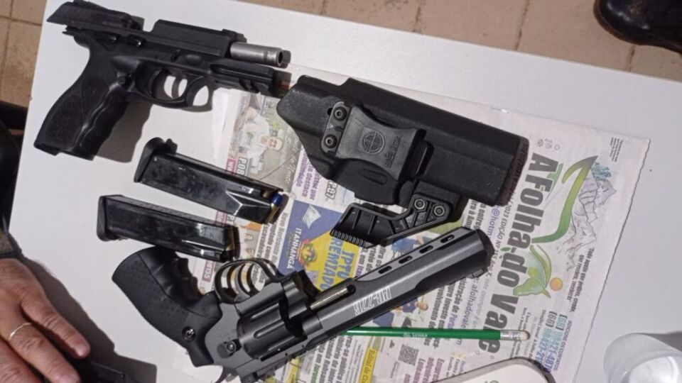 No carro havia mais um homem, que saltou do veículo no momento da abordagem e correu para uma área de mata. No porta-luvas do veículo foi encontrada uma pistola calibre 9 milímetros, um revólver, dois carregadores e 26 munições. O veículo, o material apreendido e o suspeito foram encaminhados à delegacia.