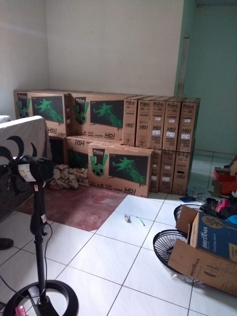 Questionado, P.V.S.S. confessou a participação no roubo e revelou onde estava o restante dos televisores roubados. Com a informação, a equipe se deslocou até uma casa no bairro Pedra 90, onde foram apreendidos mais 37 televisores dentro da caixa.