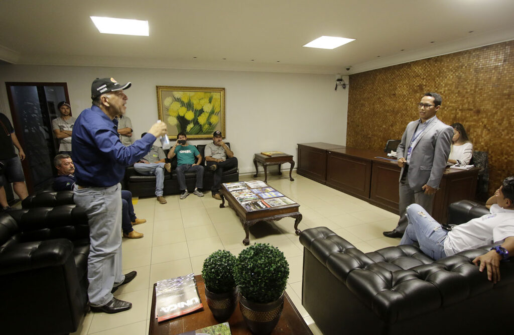 Depois de trocar amenidades com Eleus Amorim, representante dos transportadores, Wilson pediu licença e não voltou mais. Em seguida, o major Costa Silva, coordenador da segurança de Taques surgiu na sala com um aviso sobre o protocolo da reunião.