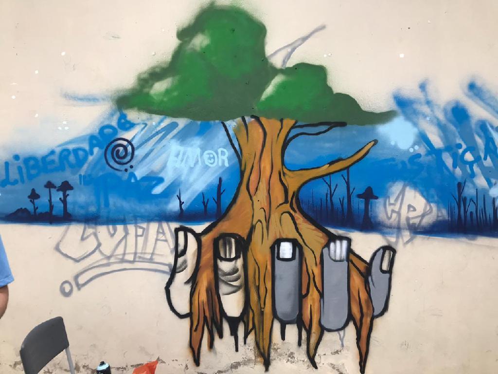Sob a orientação do Presto, os adolescentes produziram um grafite em uma das paredes do pátio, e também tiveram a oportunidade de pegar o microfone e se arriscar nas rimas. Ao fim da programação, todos conversam para expor seus trabalhos e experiências.