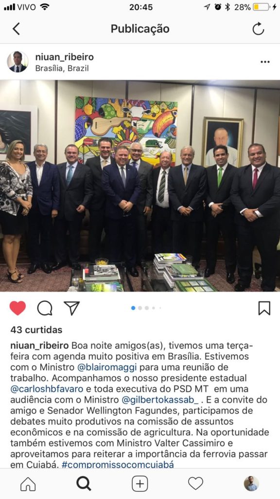 O périplo dos políticos incluiu ida a reuniões de comissões no Congresso e visitas aos ministros Blairo Maggi – que apesar de não buscar nenhum cargo neste ano, continua sendo um importante balizador da campanha dada a sua popularidade e relevância política – e Gilberto Kassab – presidente nacional do PSD.