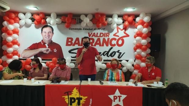 O deputado estadual Valdir Barranco (PT) foi confirmado candidato ao Senado em convenção nesta quarta-feira (16) em Cuiabá.