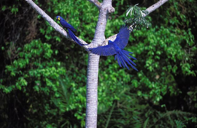 Lá, as aves são monitoradas desde 2001. Na maior parte do ano, a área abriga 15% de toda a população de araras azuis do país.