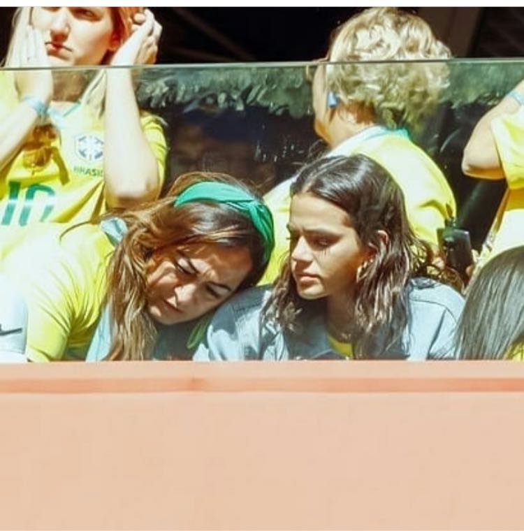 Em outras imagens nas redes sociais, é possível ver os pais da jovem (Neymar e Nadine) olhando para o chão, local onde ela recebeu os primeiros atendimentos. No dia seguinte à partida, Rafaella postou nas redes sociais uma foto com a legenda “look do mês” em que aparece com um braço imobilizado. No entanto, a jovem não disse o que ocorreu.