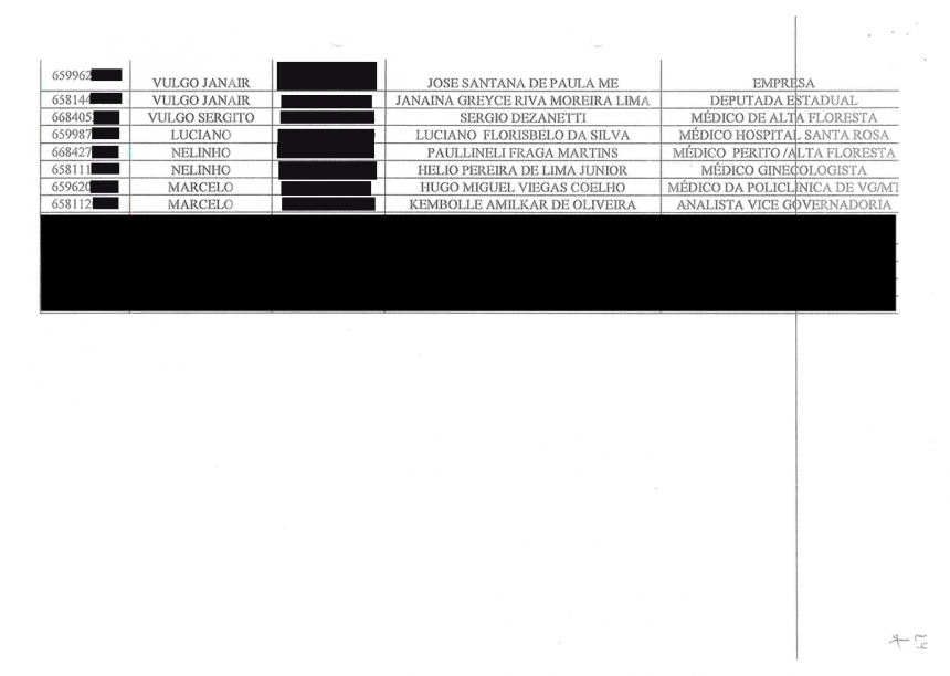 Em março de 2015, início da gestão Pedro Taques, foi acrescentado à lista o nome do jornalista José Marcondes (Muvuca), vulgo “Mumu”, de Eduardo Gomes Silva Filho, assessor do deputado Wagner Ramos, e de Romeu Rodrigues da Silva, assessor especial da Secretaria de Educação do Estado.