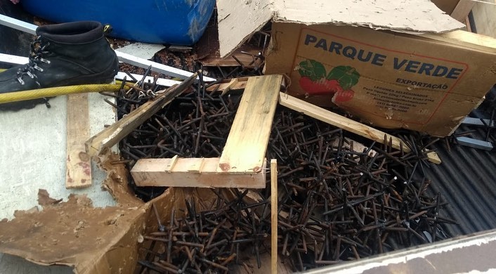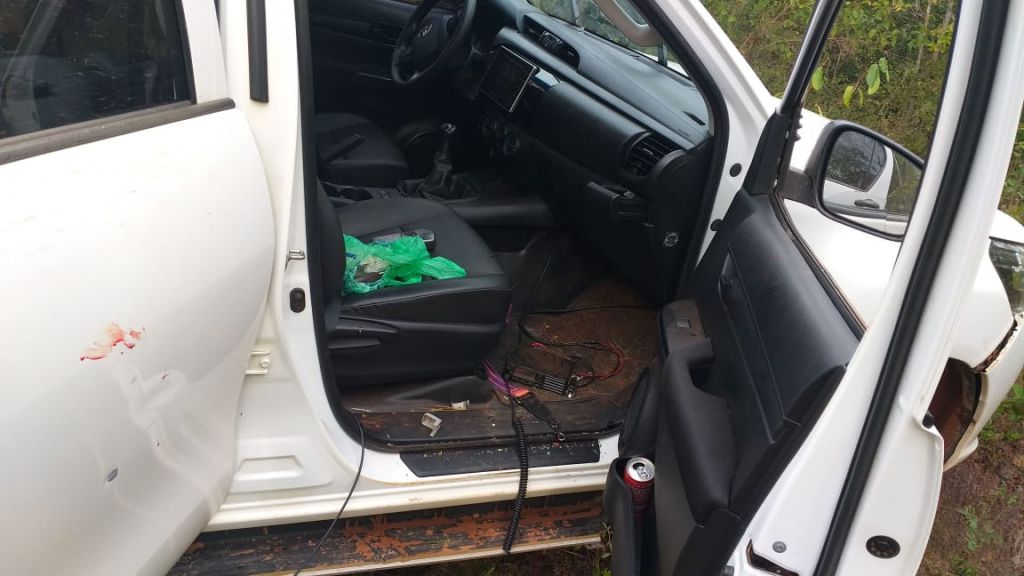 Na Hilux abandonada havia diversos “miguelitos”, artefatos utilizados contra veículos com o intuito de provocar danos a pneus, um galão de diesel, para que eles não precisassem parar para abastecer, e partes de dedos e mãos dos criminosos.