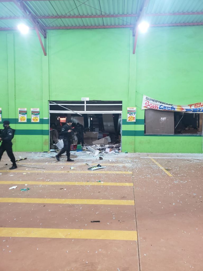 Os bandidos invadiram o Supermercado Bom Gosto, na Rodovia dos Imigrantes, no Bairro Jardim Eldorado, em Várzea Grande, por volta das 2h40, fortemente armados. No local há um caixa eletrônico.