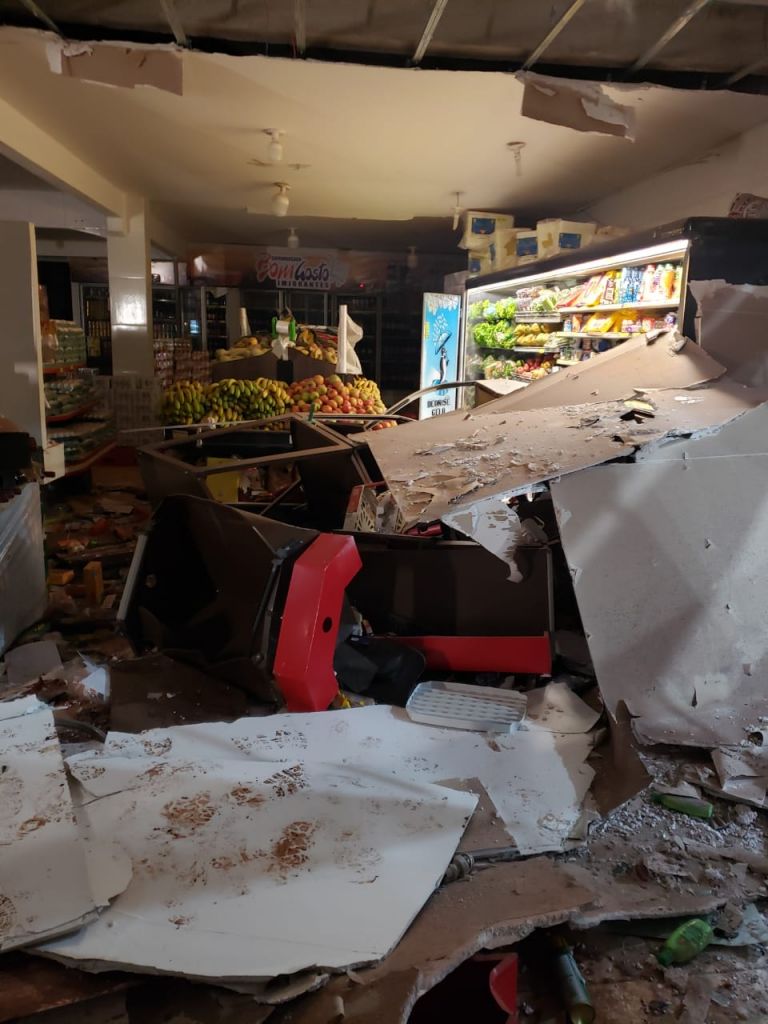 O mercado ficou destruído. Foram encontradas cápsulas de calibre 7.62, 5.56 e 9mm, além de uma emulsão explosiva ainda não detonada no caixa eletrônico, que precisou ser retirada pelos explosivistas do Bope.