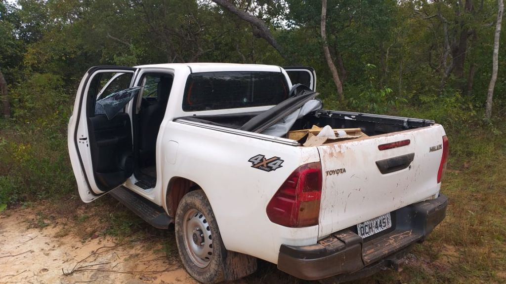 No caminho, porém, um Fiat Strada cruzou pela equipe, parou a uma distância de mais ou menos 150 metros e, em seguida, uma Hilux branca cruzou pela frente da Rotam.