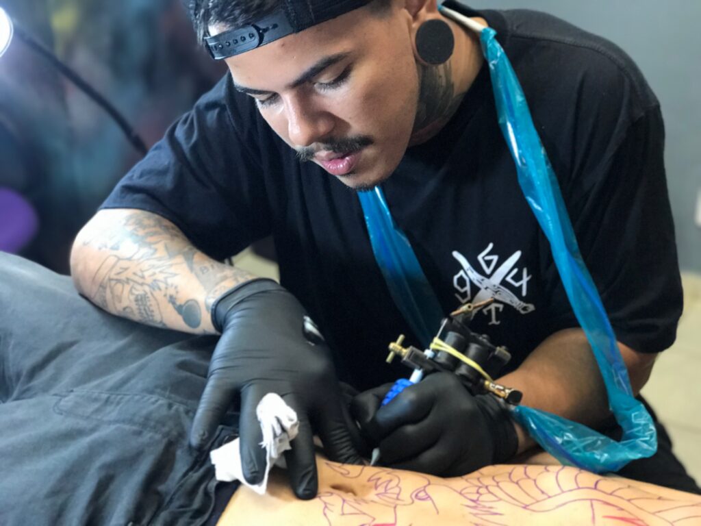 “Na mesma hora, eu fui procurar o Instagram dele e eu vi uma foto bem bonita. Eu entrei em contato, falei ‘olha, eu queria tatuar essa foto sua, pra eu podar te ajudar, é uma forma de te ajudar com o meu trabalho, e a grana eu te mando’ ”, conta.