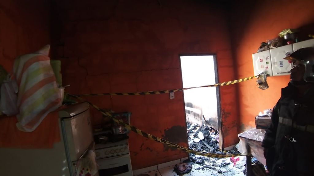 As chamas atingiram por completo um dos cômodos e causaram danos na estrutura do imóvel.