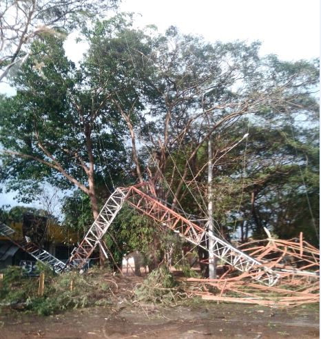O clima seco do inverno mato-grossense deu lugar à uma forte tempestade na cidade de Sinop (500 Km de Cuiabá), na tarde deste domingo (19). Um vendaval seguido de muita chuva derrubou uma antena de uma TV Local, retransmissora de Gente TV. A queda gerou apenas prejuízos materiais, já que a torre estava localizada em um terreno vazio, não atingindo edificações.