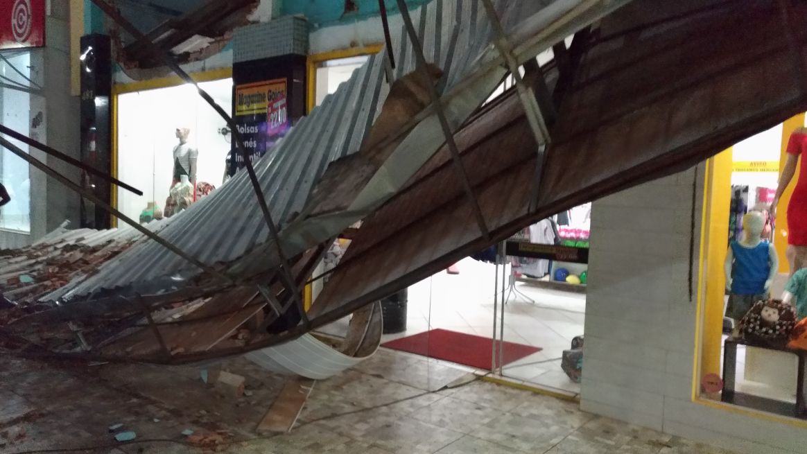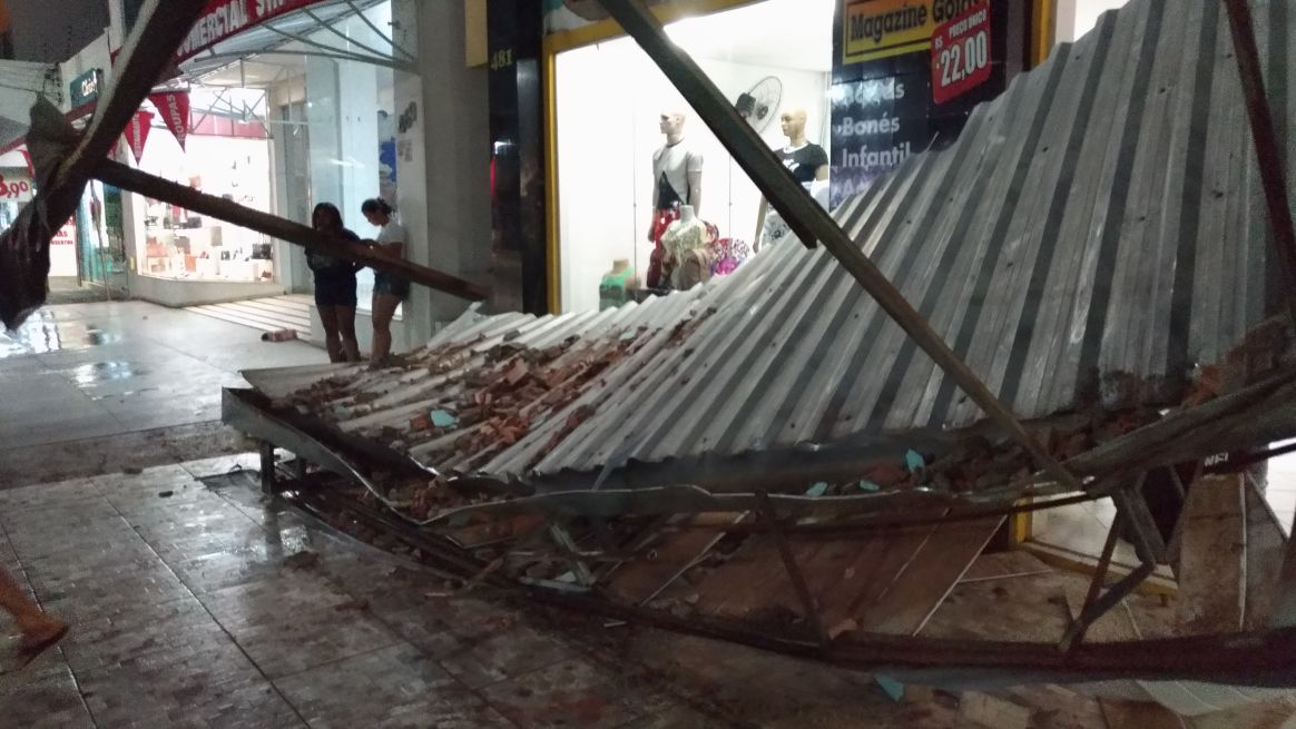 Diversas lojas da área central também tiveram suas fachadas danificadas. Uma das mais graves foi a queda de toda a estrutura frontal de uma loja de roupas. De acordo com a gerente do estabelecimento, Simone da Silva, a parte do fundo também foi destelhada e acabou alagando a área interna da loja.