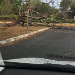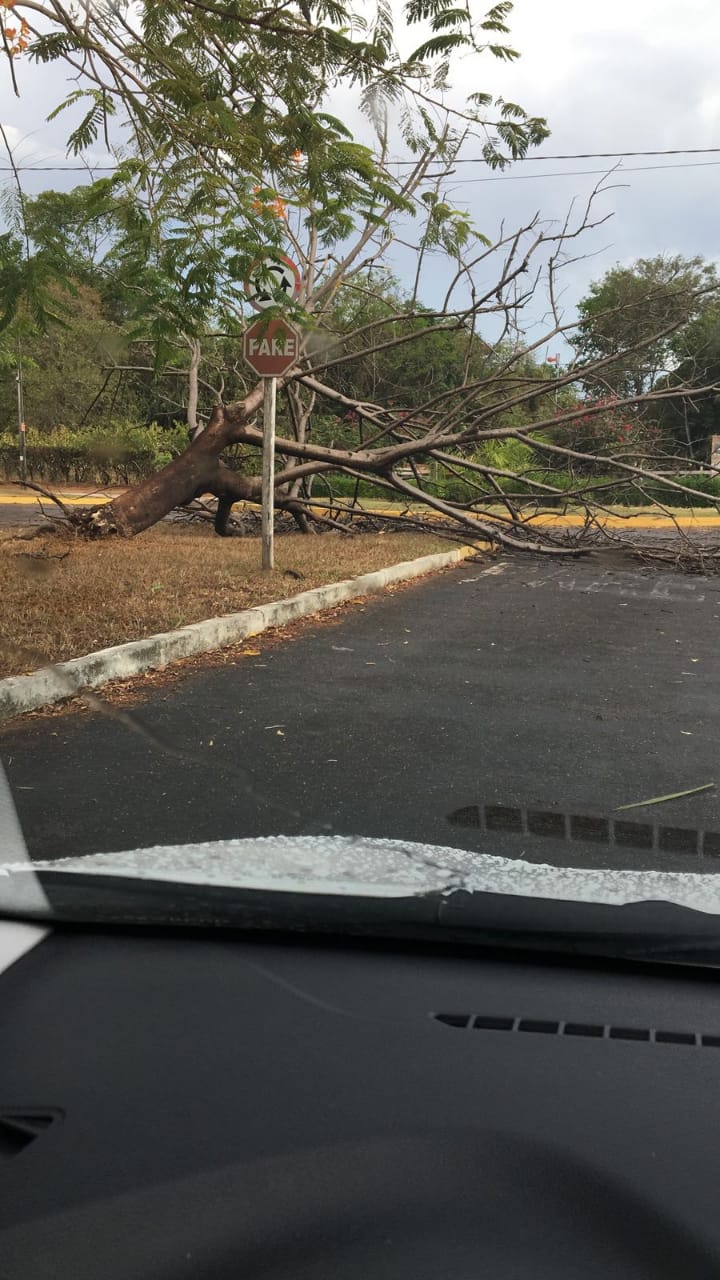 Uma das rotatórias de acesso à área central também acabou ficando interditada após a queda de uma árvore, e parte da mesma região ficou completamente sem energia.