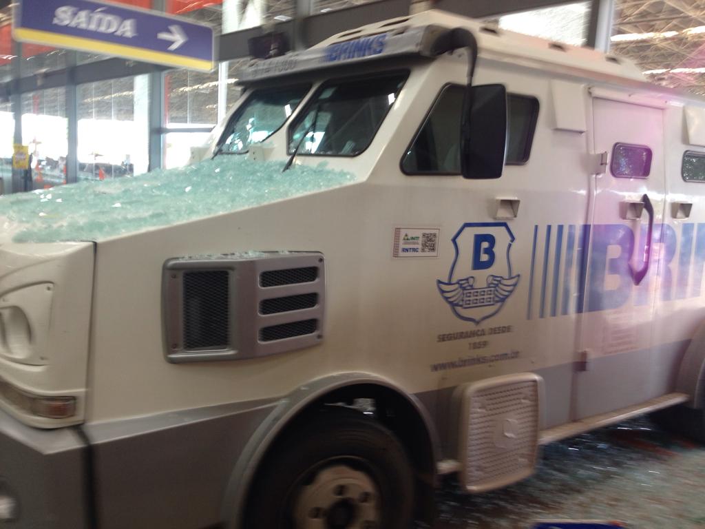 Testemunhas informaram ao LIVRE que o motorista do carro-forte, ao perceber a situação, avançou com o veículo para dentro do mercado, quebrando as portas de vidro, para dar cobertura à equipe.