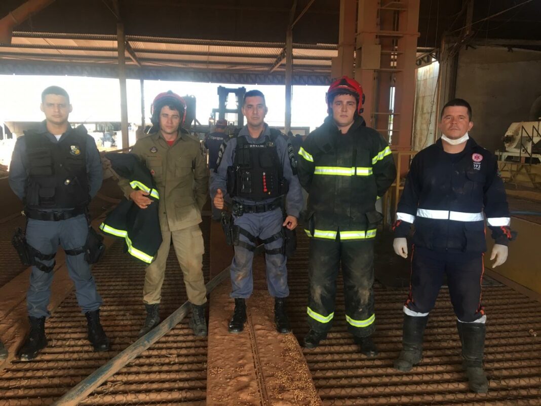 Foram necessárias três horas de trabalho para que, finalmente, a vítima fosse retirada da moega. No resgate, foram utilizadas cordas, madeiras, cintas e a força dos militares, que amarraram a corda no corpo da vítima e a puxaram até um local seguro.