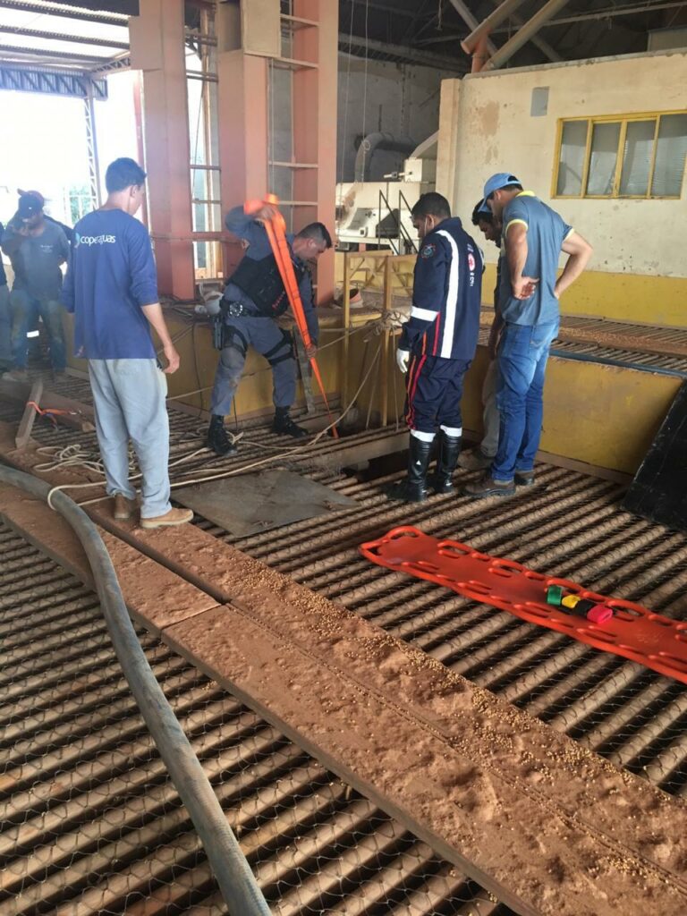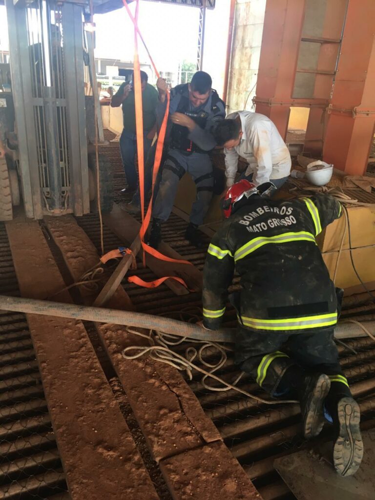 Um trabalhador de 47 anos caiu em uma moega (equipamentos destinados a dosagem de materiais provenientes dos silos), em Campo Novo do Parecis (400 km de Cuiabá), nessa terça-feira (5). Ele ficou soterrado e precisou ser resgatado por equipes de policiais e bombeiros militares.