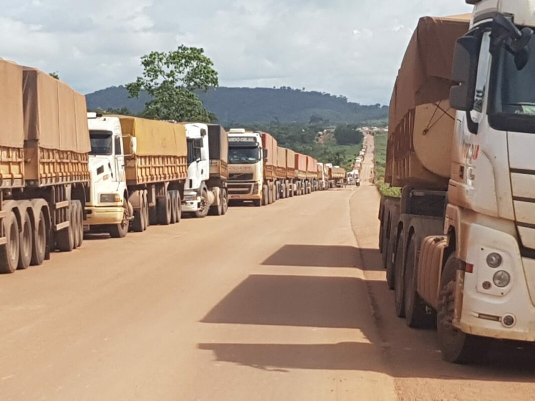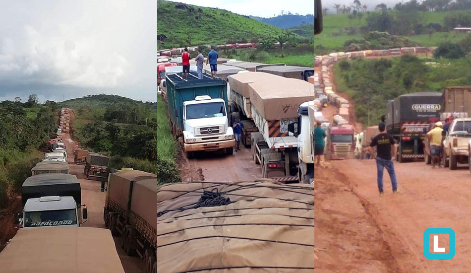 Estimativa da prefeitura de Novo Progresso (1.060 km de Cuiabá-MT) aponta que cerca de três mil carretas estão “presas” na região. Enquanto uns motoristas querem retornar aos lares, outros tentam, em vão, correr contra o tempo para entregar a oleaginosa em perfeitas condições nos portos.