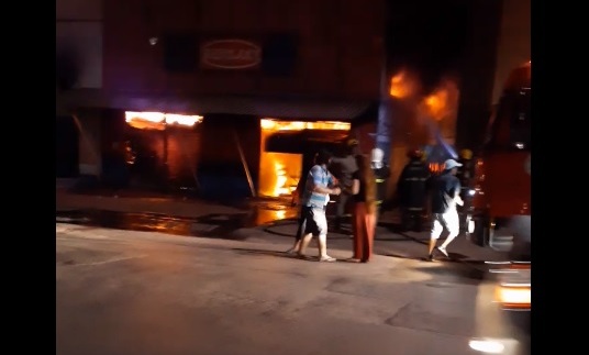 Um incêndio atingiu uma loja do bairro 1º de Março, em Cuiabá na noite deste domingo (04). O Corpo de Bombeiros faz o trabalho de rescaldo para evitar o surgimento de novos focos.