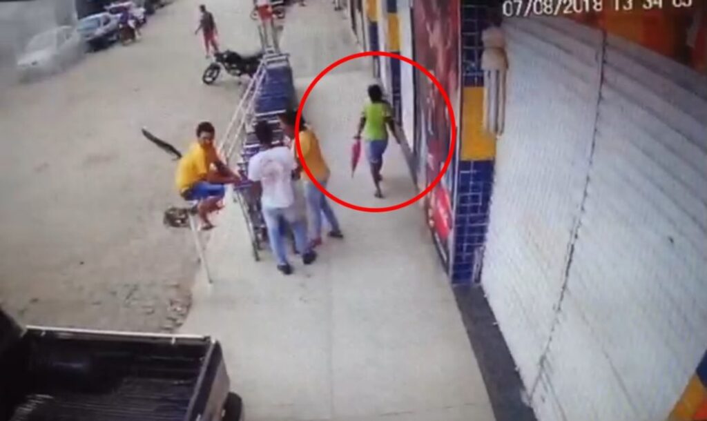 Conforme as imagens, Vera aparece caminhando na calçada, com um guarda-chuva na mão, quando, de repente, é acertada por uma peça do ônibus. É possível ver o momento em que ela – literalmente – voa da calçada para dentro de uma loja de eletrodomésticos.